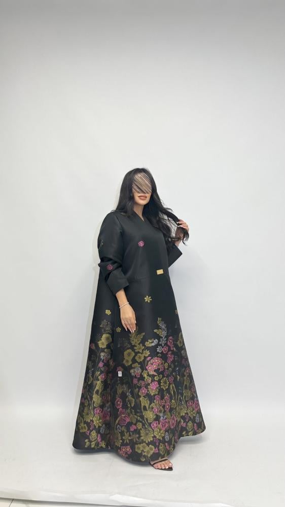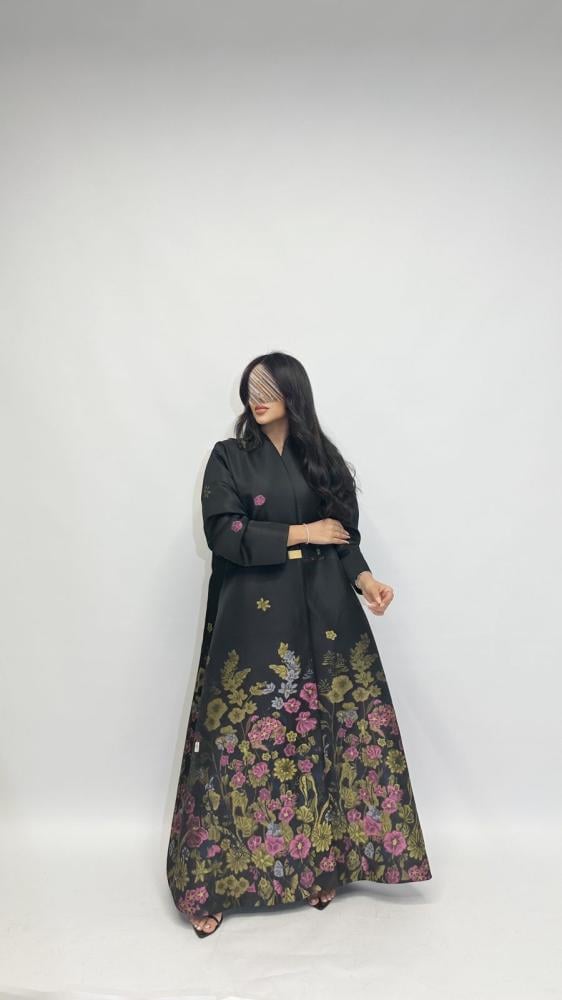 اللون: أسود كامل مع تطريز ناعم يبرز تفاصيل القماش ويضيف لمسة من الأناقة.
